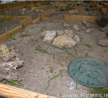 Foto: Als Überwinterungsquartier für Landschildkröten können große, in den Boden eingebaute Tonnen dienen. Die Temperatur und Luftfeuchtigkeit wird hier elektronisch überwacht.